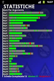 -Visualizzazione lista completa di tutti quiz: mostra tutte le domande dell'esame divise per argomenti con le relative risposte VERO/FALSO, permettendone la memorizzazione.